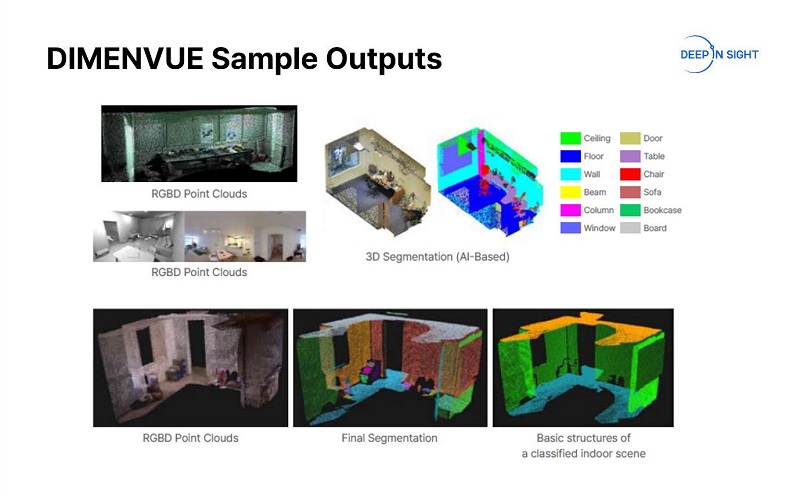 DIMENVUE是一款一体化设备,采用小型化和轻量化高精度激光雷达(光探测和测距)传感器以及高容量锂离子电池。基于人工智能学习技术以及2D相机捕获图像数据(RGB图像),该设备便于对象标记和分割,将其与3D数据无缝集成,可以实时获取远程3D空间和对象信息。